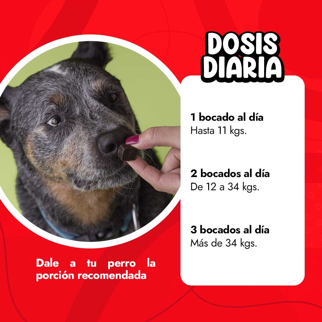 - 1 masticable al día para perros de hasta 11 kg